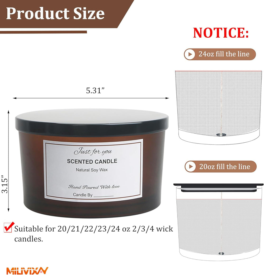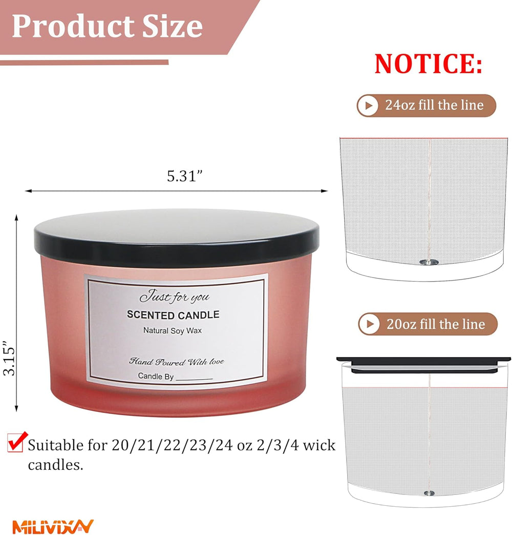 MILIVIXAY 6 x 680 ml Kerzengläser mit Metalldeckeln und Kerzenherstellungs-Kits – 3 Docht-Kerzenglas