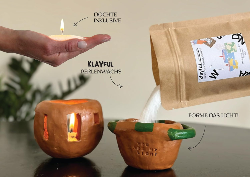 KLAYFUL - Set mit Kerzen und Ton zum Trocknen an der Luft | 400g 100% pflanzliches Perlwachs, 1,5kg