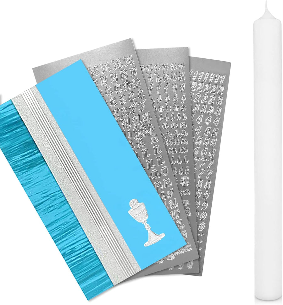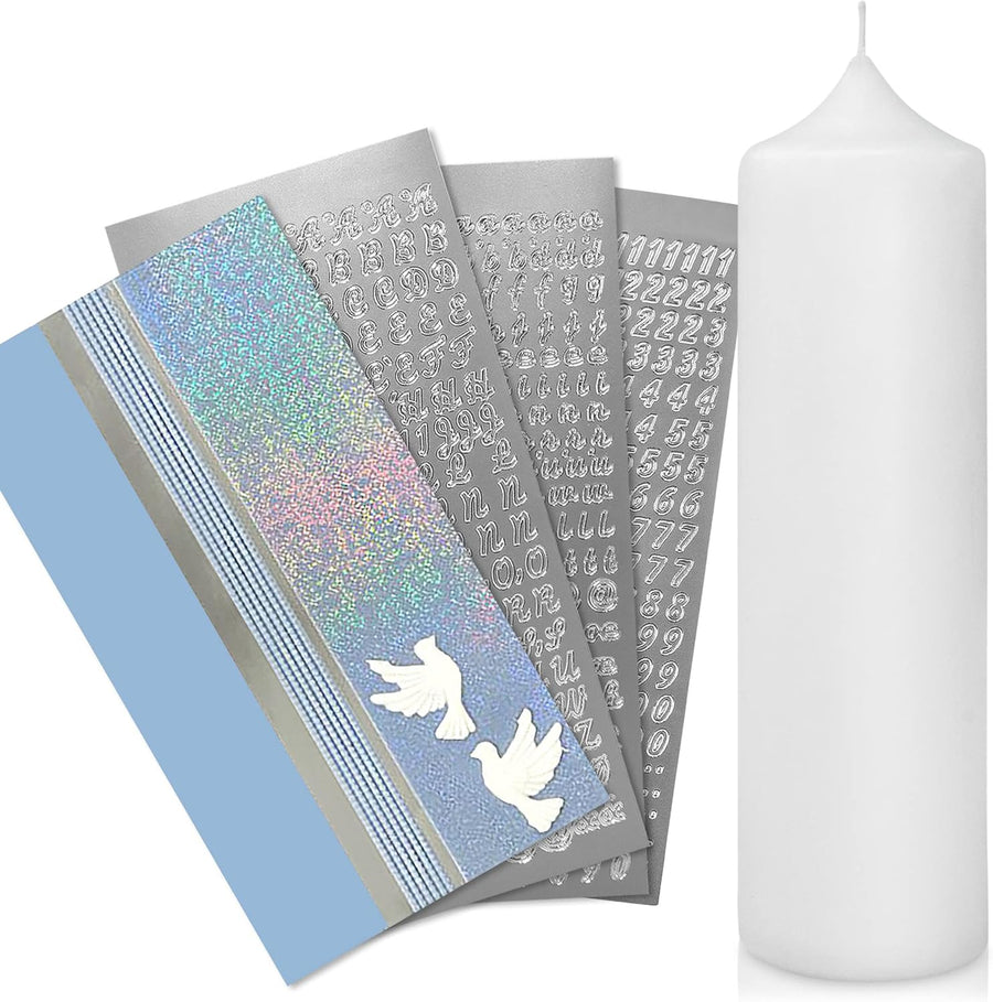 WIKAKERZEN Kerzen-Rohling Set für Taufe Hochzeit Kommunion selbst gestalten mit Buchstaben zum Klebe