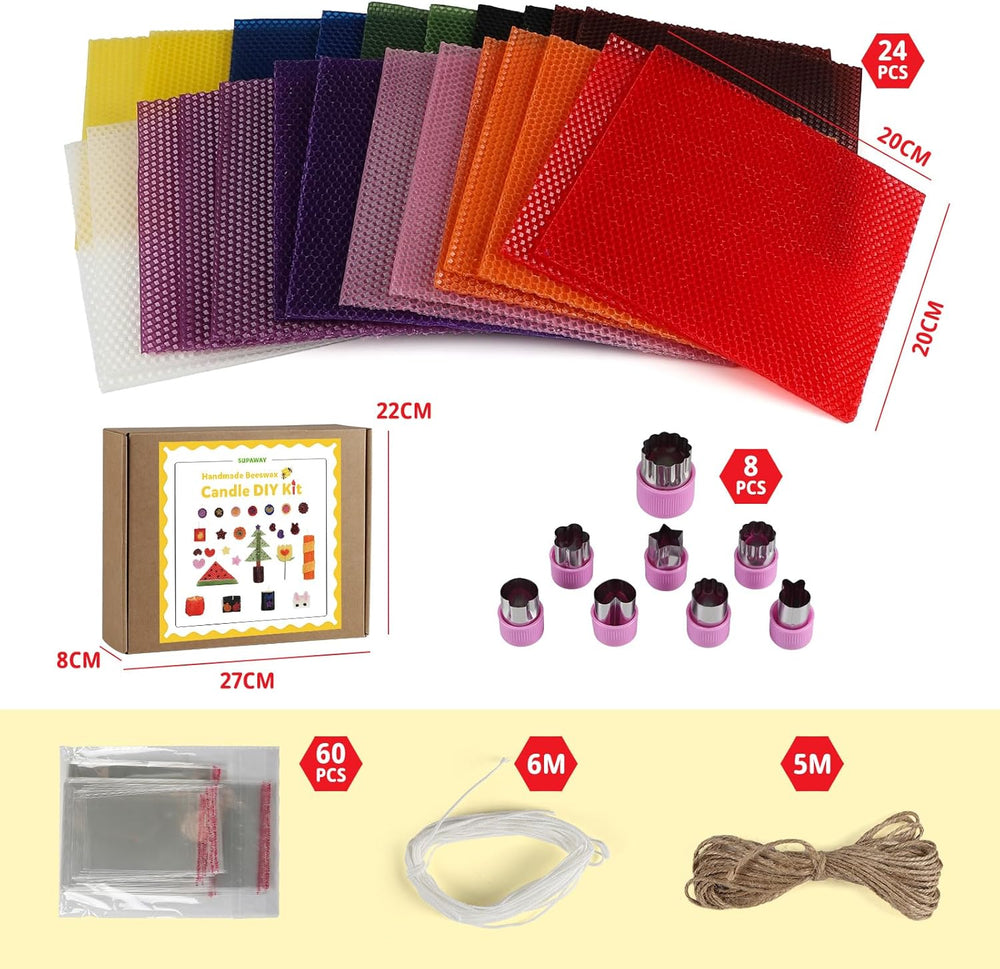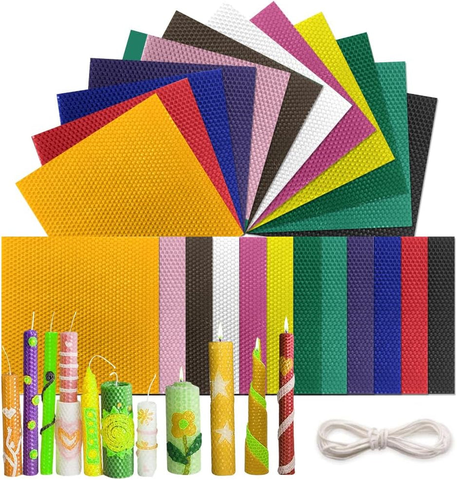 SUPAWAY 24 Stück Farbenfrohe Wachsplatten für Kerzen Bienenwachs-Kerzenherstellungsset Kerzen Selber