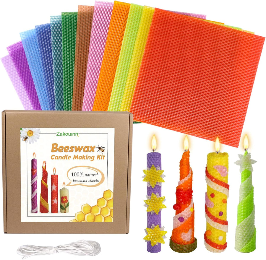 Zakouinn Bienenwachs-Kerzenherstellungsset für Kinder - 12 leuchtende Farben, Bienenwachsblätter zur