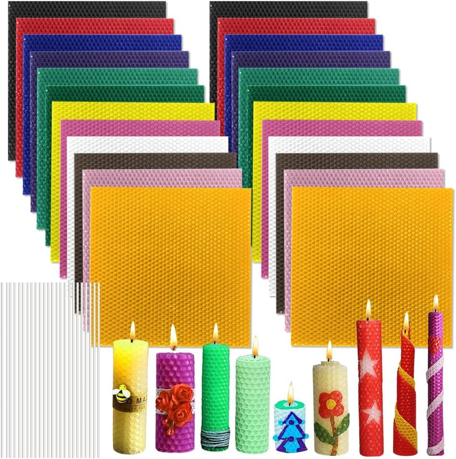 SUPAWAY 24 Stück Farbenfrohe Wachsplatten für Kerzen Bienenwachs-Kerzenherstellungsset Kerzen Selber