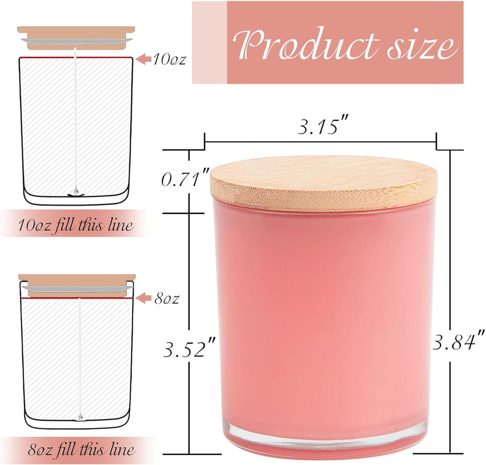 MILIVIXAY Mattierte rosa Kerzengläser aus Glas mit Deckeln und Kerzenherstellungs-Sets, leere Kerzen
