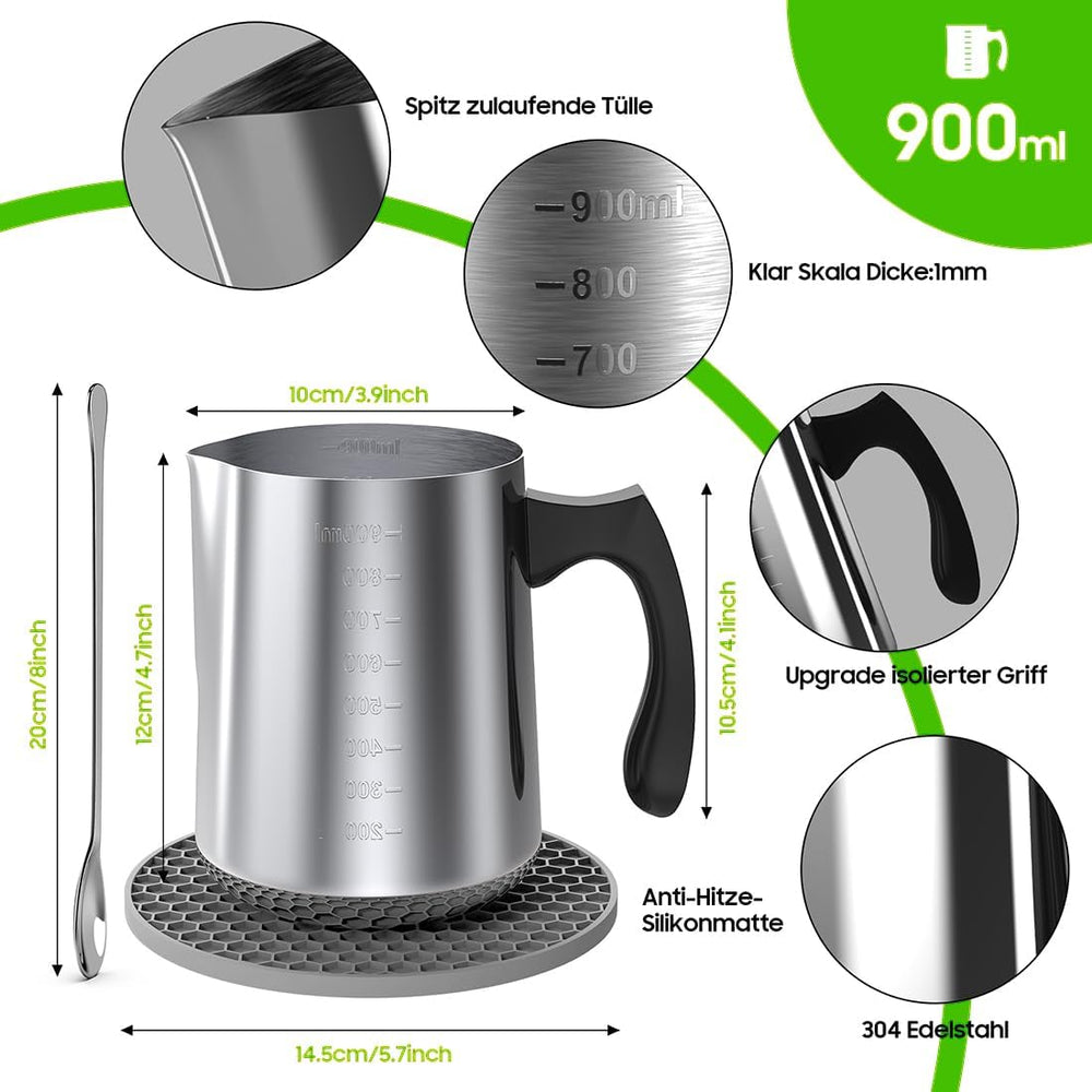 Aslanka Kerzenherstellung Set bestehend aus 900ml Kerzenherstellung Ausgiesser, 1kg natürliches Soja
