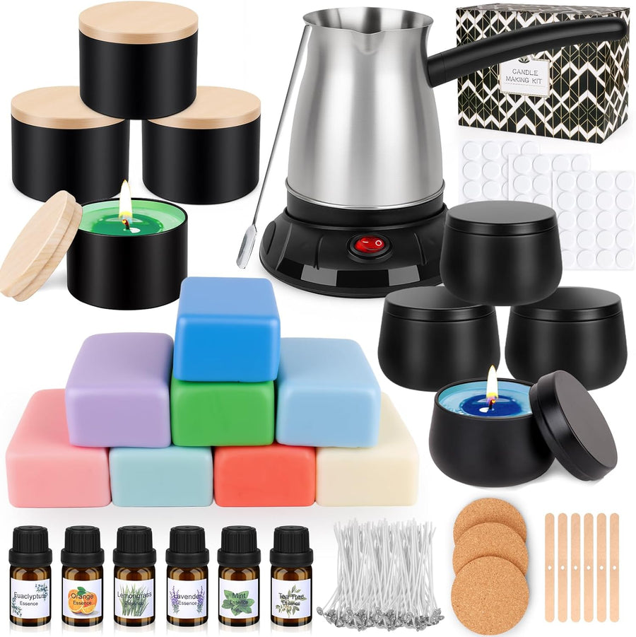 Kerzen Selber Machen Set, Elektrischer Wachsschmelzer, 480g Farben Natürliches Sojawachs, Kerzenhers