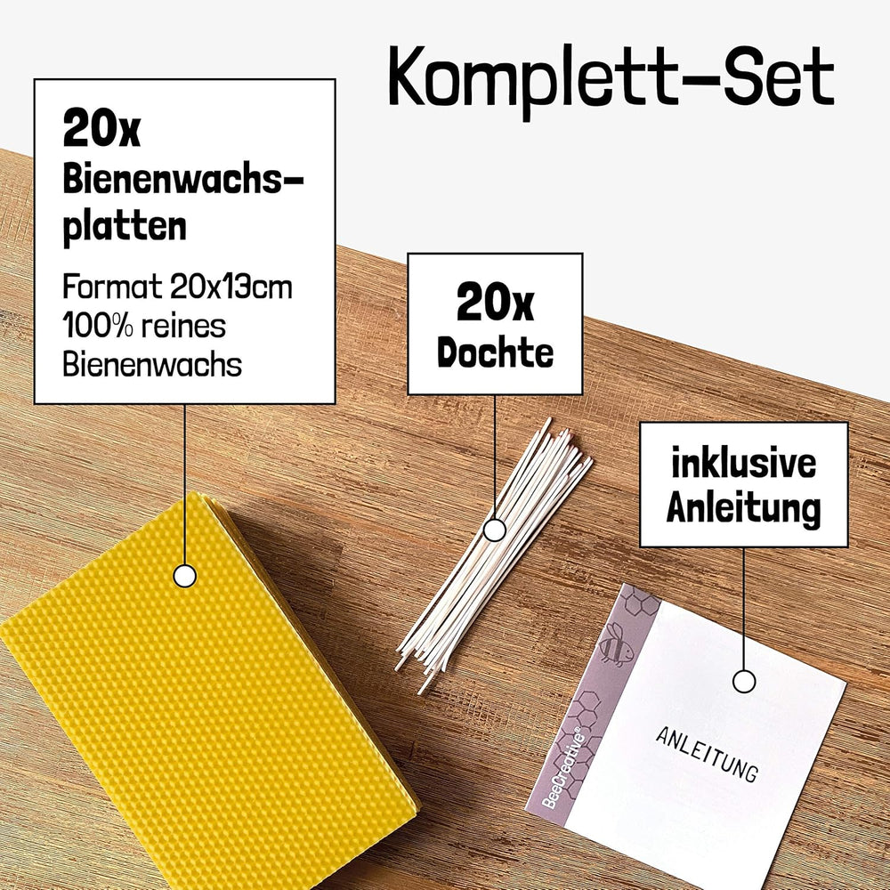 BeeCreative Bienenwachs-Kerzen Bastelset für 20 Kerzen, 100% reines Bienenwachs, Bienenwachskerzen s
