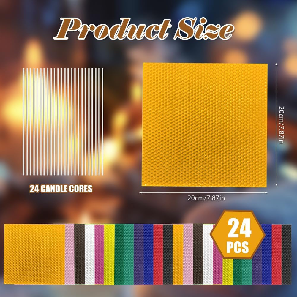 BuzzoXerex Bienenwachsplatten für Kerzen, 24 Stück Farbenfrohe Wachsplatten für Kerzen(20 x 20cm), K