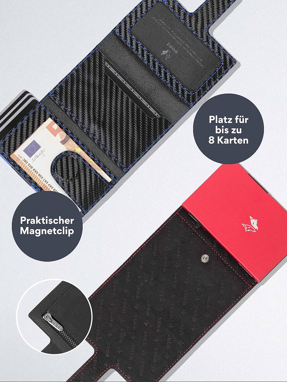 BORZ Prime Limited Kartenetui mit Münzfach für AirTag I Digitale Visitenkarte I Slim Wallet RFID Sch