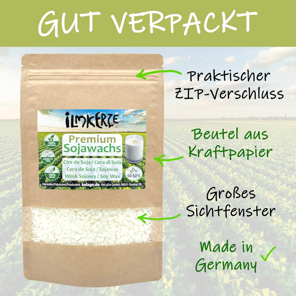 Ilmkerze® Premium Sojawachs Flocken 2 kg | natürlich | nachhaltig | palmölfrei | Kerzenwachs für DIY