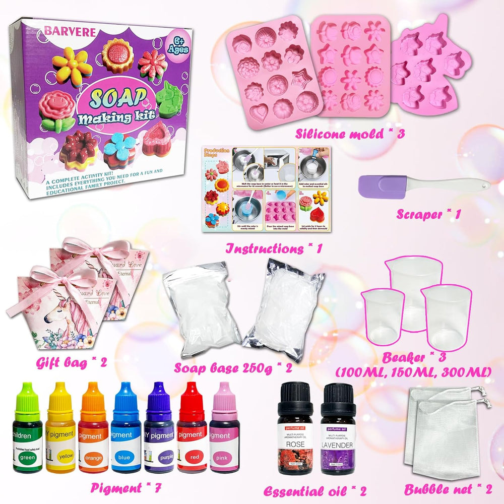 BARVERE Seife Selber Machen Kinder, 500g Seife, 19 Formen, 7 Pigment, 2 Essentielle Öle, 2 Geschenkt