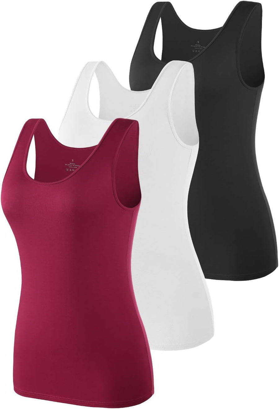 vislivin Elastische Tank Tops für Damen Unterhemden 3/4er Pack S 3er Pack - Schwarz/Weiss/Weinrot, S