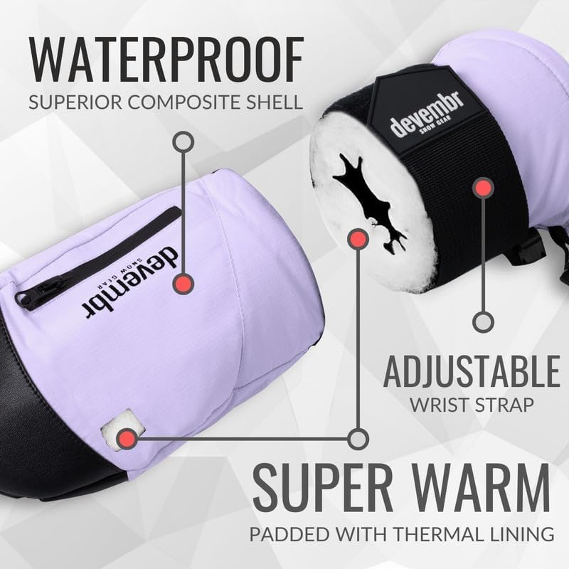 devembr Ski-Fäustlinge mit Handgelenkschützern, Warme Snowboard-Fäustlinge, Wasserdicht M Violett, M