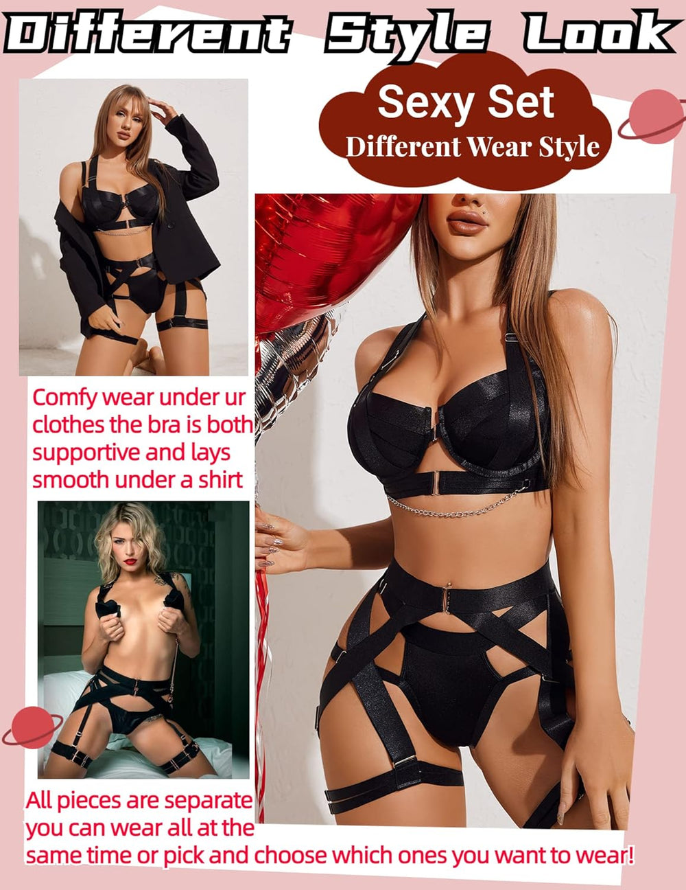 Avidlove Dessous Damen Sexy Unterwäsche Push Up BH mit Bügel Slip Verstellbar Riemen Curvy Lingerie