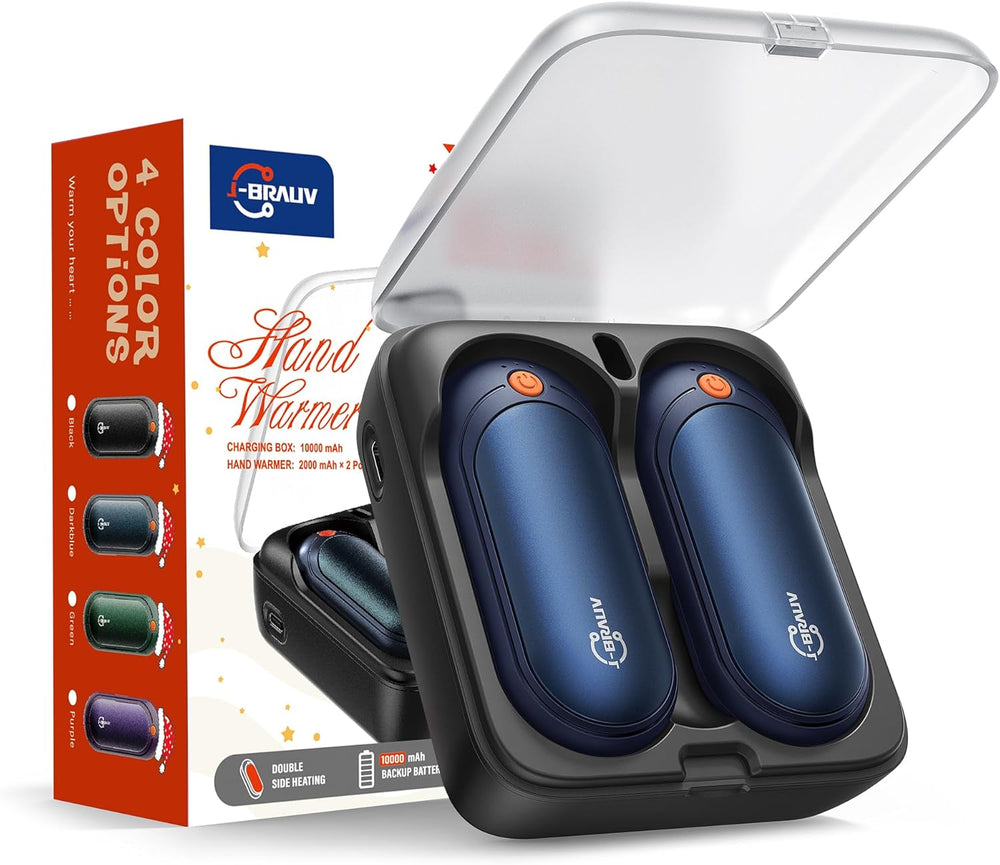 J-BRAUV Handwärmer Elektrisch 2er Set, 4000mAh Taschenwärmer Wiederverwendbar Mit 10000mAh Ladebox,