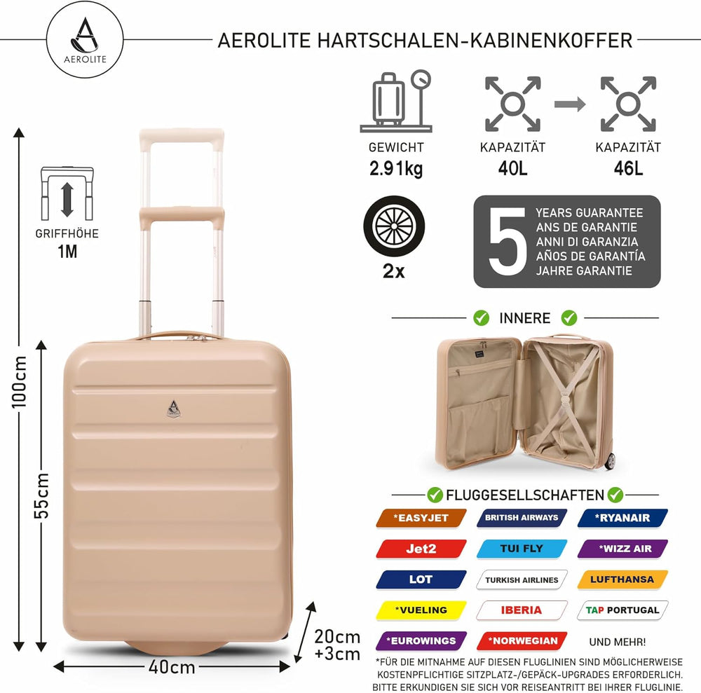 Aerolite 55x40x20cm Lufthansa Eurowings TUI SunExpress Condor Ryanair Priority 2 Rollen Leichter Har