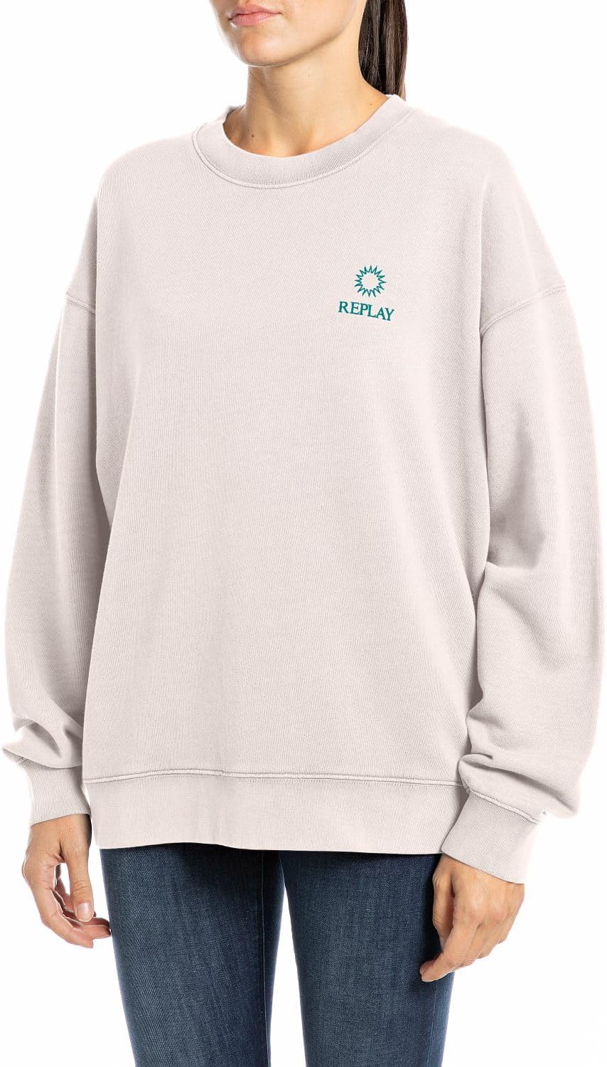 Replay Damen Sweatshirt mit Logo XXS 565 Powder Pink, XXS 565 Powder Pink
