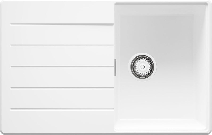 PRIMAGRAN Granitspüle Weiss 78x50cm, Granitspüle 1 Becken + Ablauf-Set, Küchenspüle ab 45er Untersch