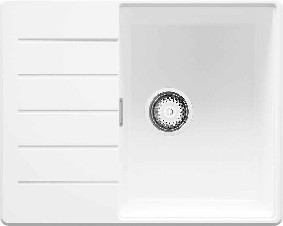 PRIMAGRAN Granitspüle Weiss 62x50cm, Granitspüle 1 Becken + Ablauf-Set, Küchenspüle ab 40er Untersch