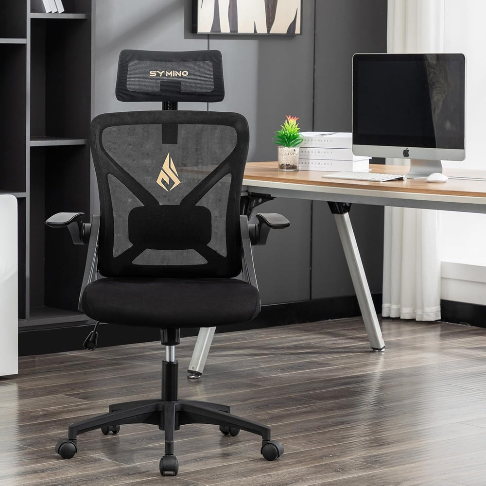 Symino Bürostuhl, Schreibtischstuhl, Drehstuhl Ergonomischer mit Verstellbarer Kopfstütze, Armlehnen