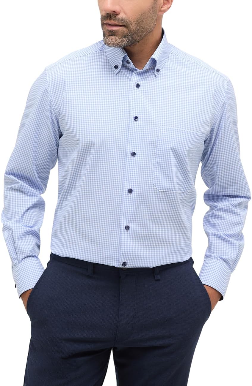 ETERNA Comfort Fit Hemd Langarm New Kent Kragen Muster rot 40 Hellblau, 40 Hellblau