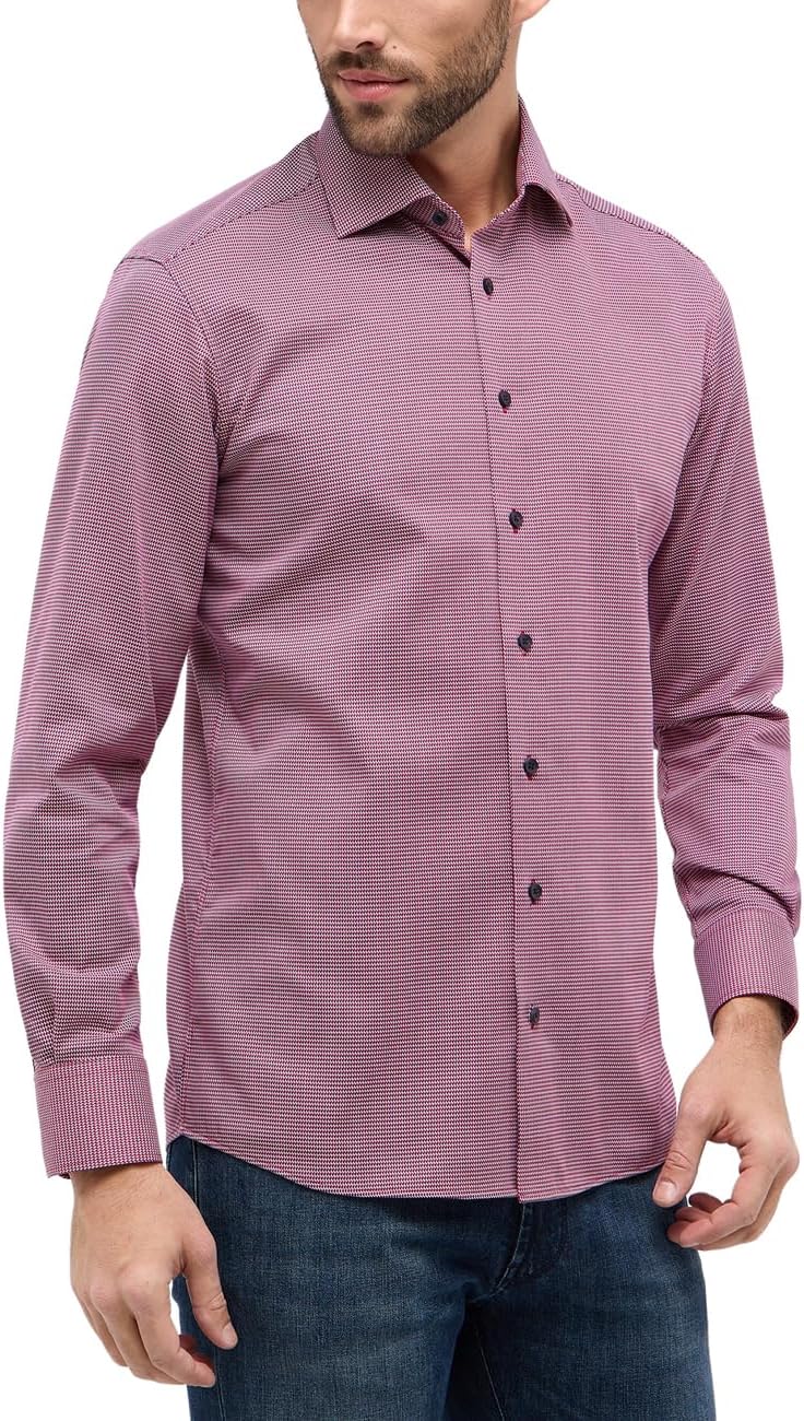 ETERNA Herren strukturiertes Baumwoll-Hemd MODERN FIT 44 Rot, 44 Rot