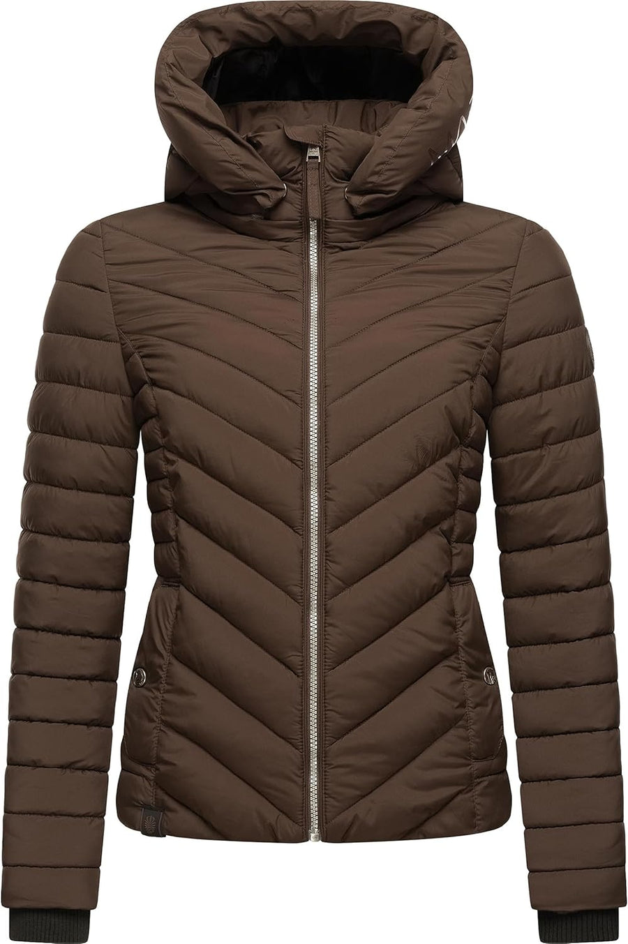 MARIKOO Damen Übergangsjacke leichte Steppjacke kurz mit Abnehmbarer Kapuze Kagomee XS-XXL S Dark Ch