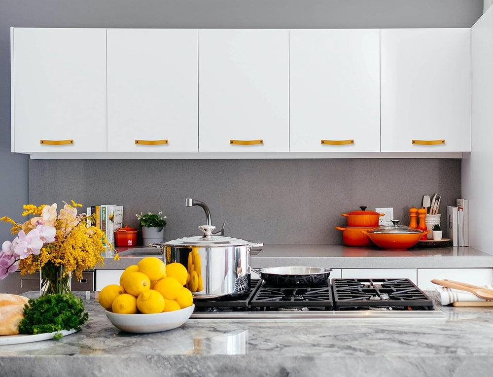 Brute Strength - Ledergriffe für Möbel - Ockergelb - 4 Stück - 20 x 2,5 cm - Schrankgriff, Türgriff