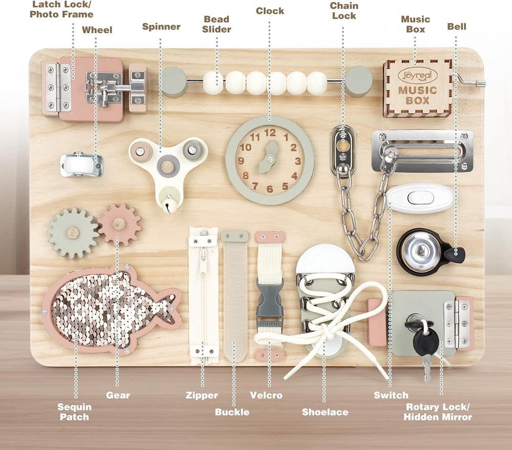Joyreal Gross Montessori Busy Board - Motorikbrett Activity Board Motorikboard Montessori Spielzeug