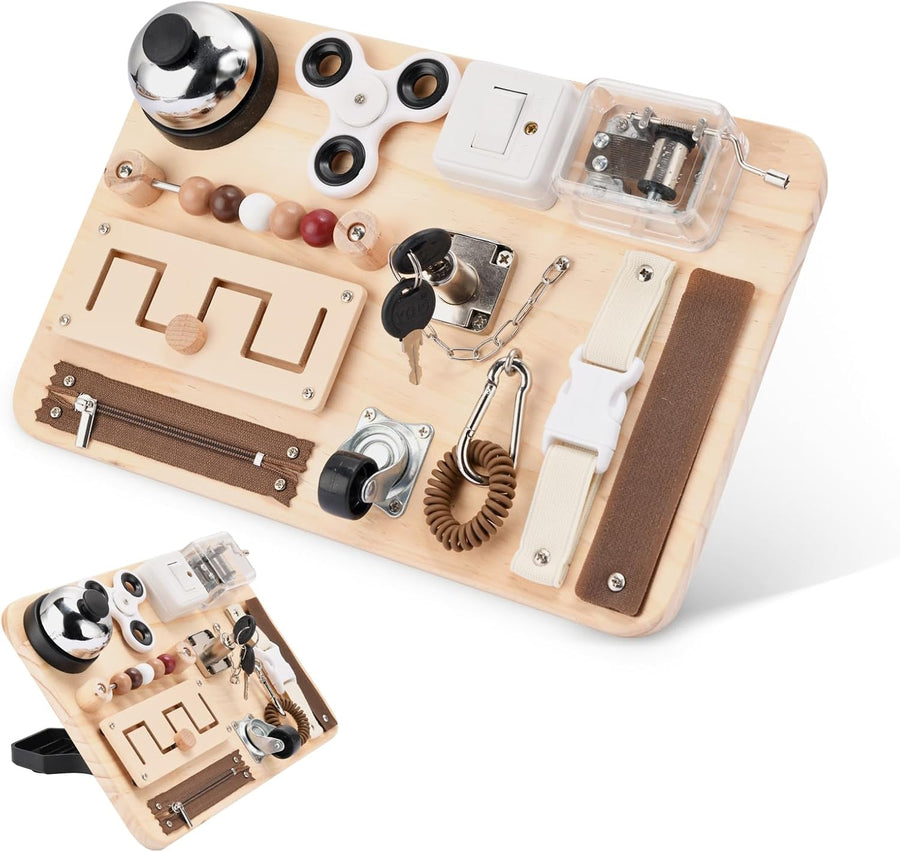 Ulikey Busy Board, Montessori Spielzeug Activity Board mit LED-Lichtschaltern, Motorikspielzeug Holz