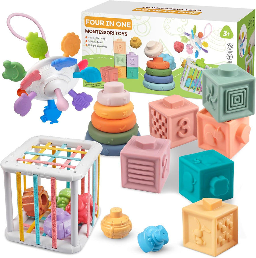 6 in 1 Montessori Spielzeug Baby, Spielzeug Baby ab 6 bis 12 Monate, Sensorisches Baby Spielzeug, Mo