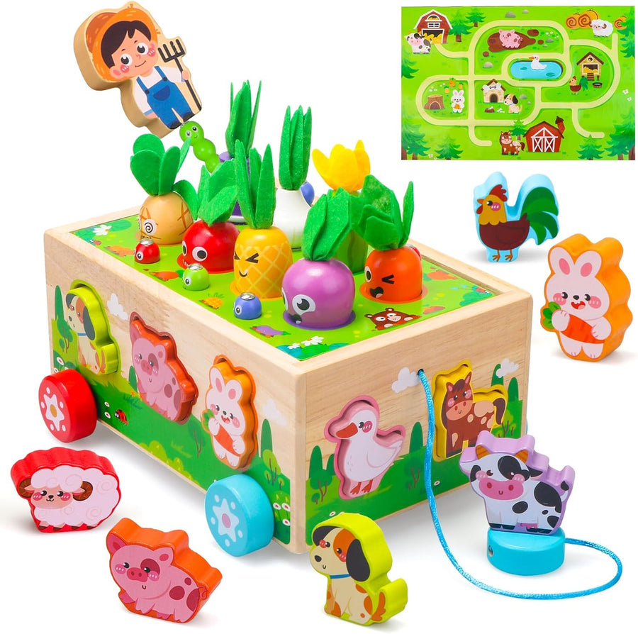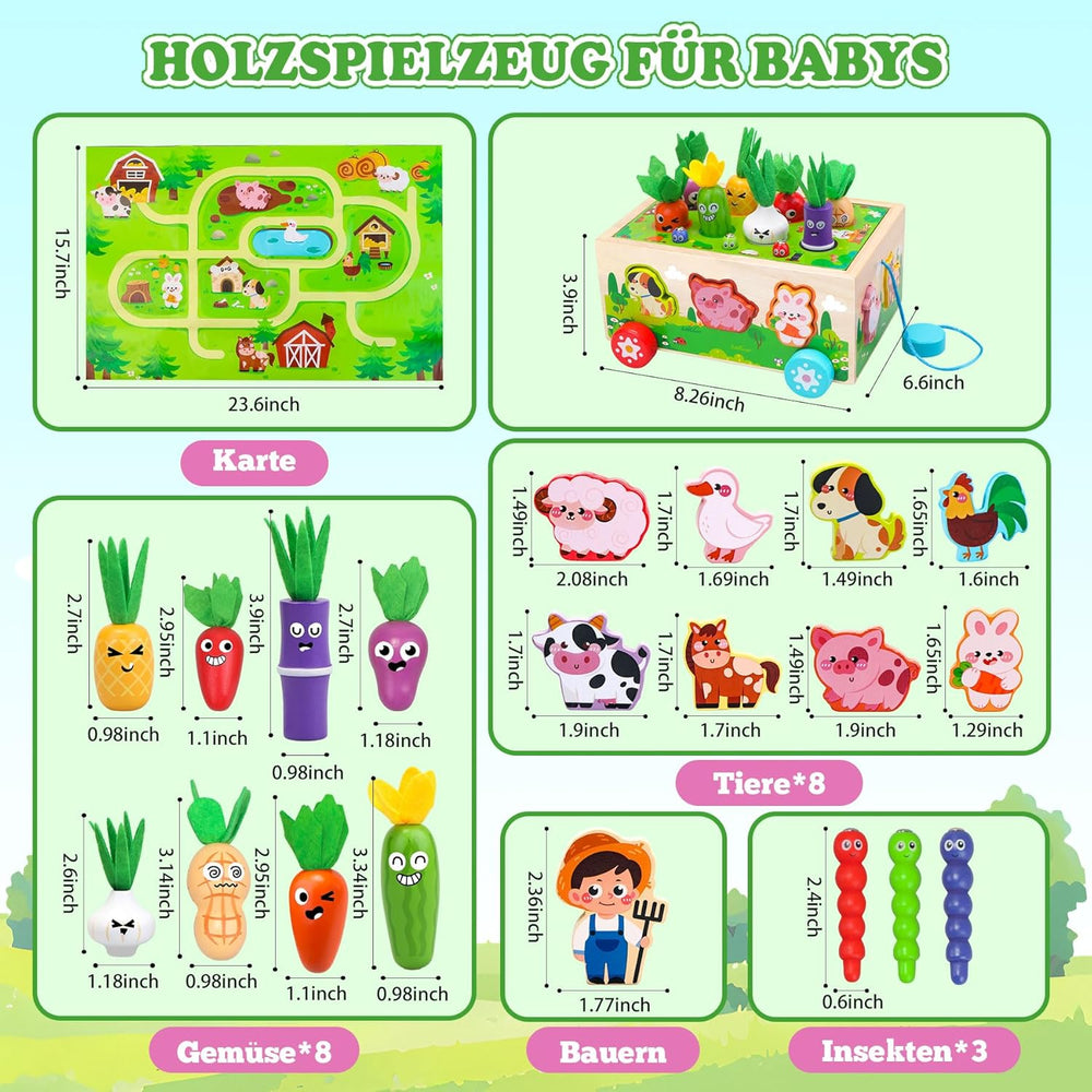 Tooysea Montessori Spielzeug ab 1 2 3 Jahr, Montessori Spielzeug Baby mit Landkarte, Karotten Stecks