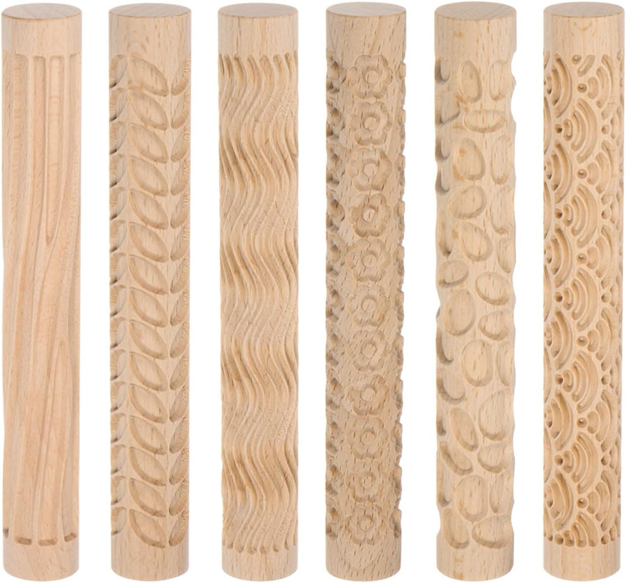 QUARKZMAN 6Stk Holz Ton Rolle Muster Modellieren 5.9" Buche Holz Hand Rollen Holz Töpferei Werkzeuge