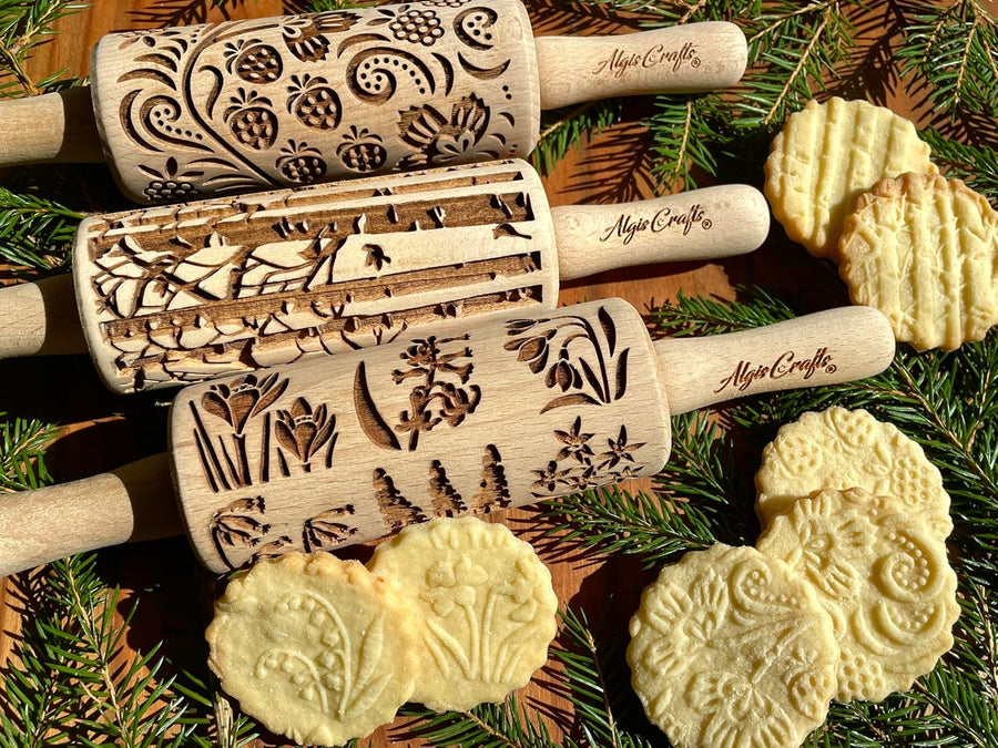 WEIHNACHTSGESCHENKE Nudelholz mit Muster Weihnachten Backen - Teigroller Holz für DIY Weihnachten Pl