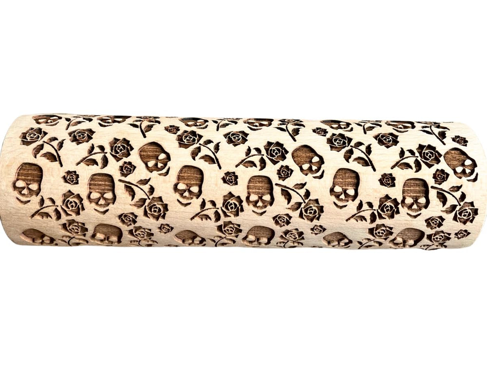 TOTENKOPF mit ROSEN Geprägte Nudelholz. Teigrolle mit Schädel un Blumen. Kekse. Präge Teigrolle. Hal