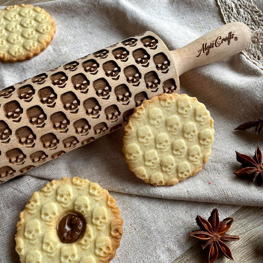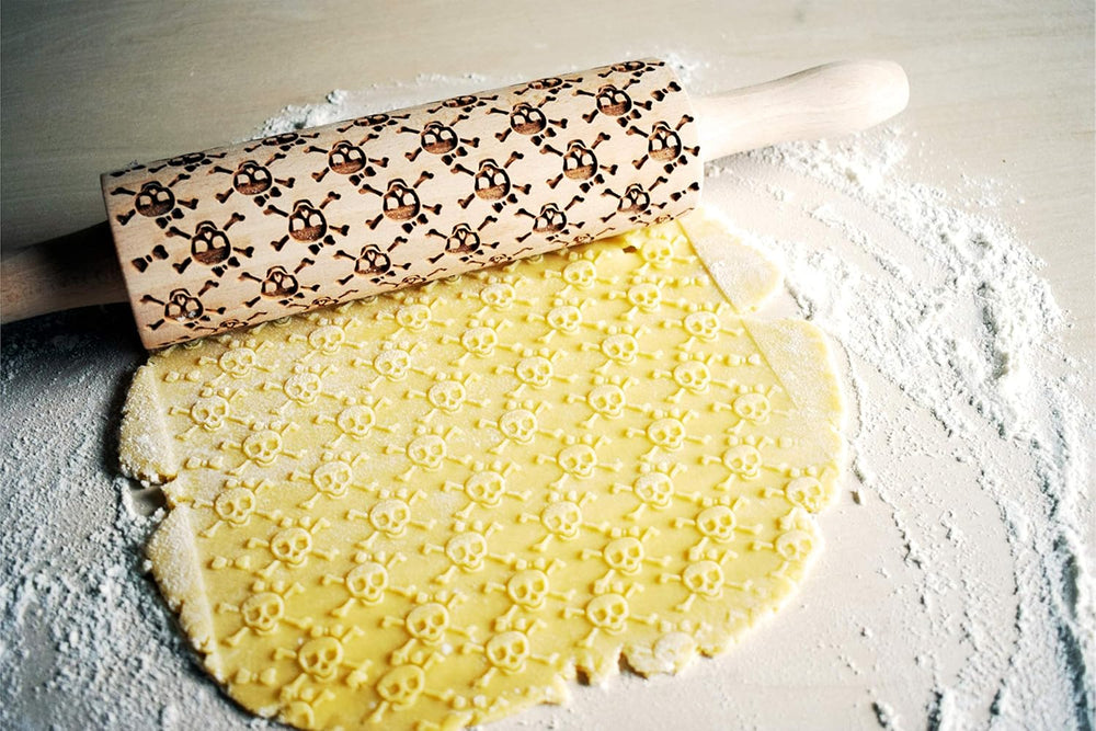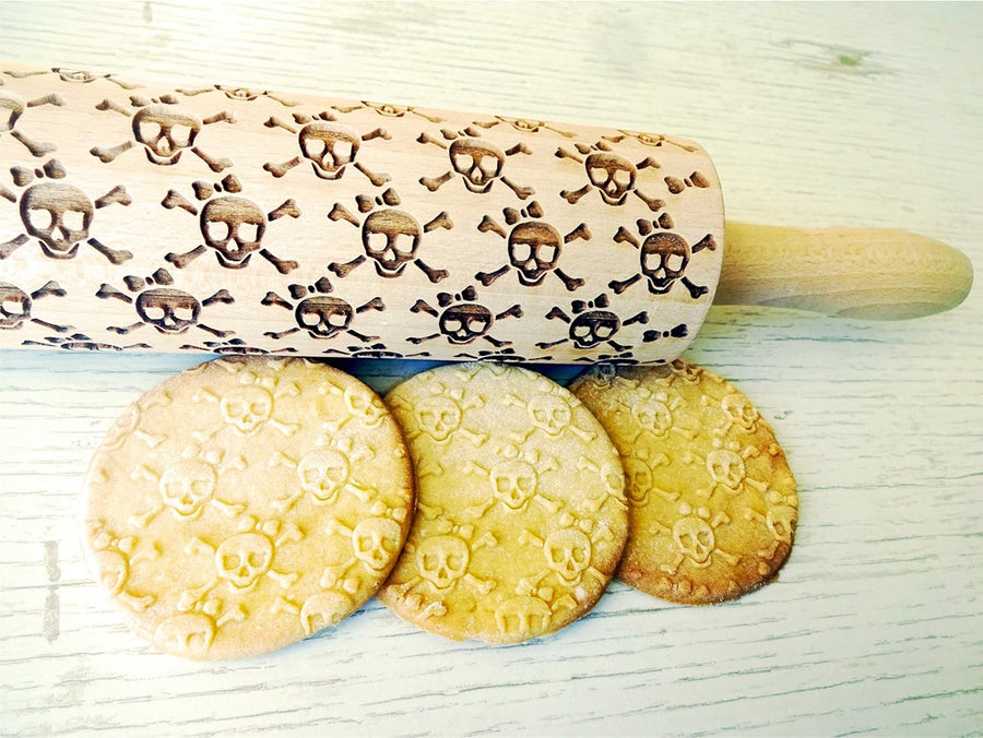 TOTENKOPF Geprägte Nudelholz mit Muster für Hausgemachtes Gebäck von Algis Crafts, TOTENKOPF
