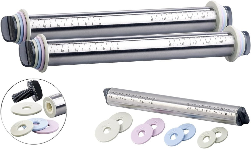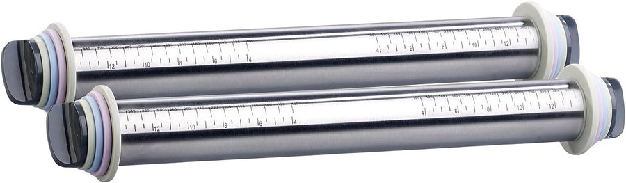 Rosenstein & Söhne Teigroller zum Backen: 2er-Set höhenverstellbare Edelstahl-Teigroller,4 Paar Abst