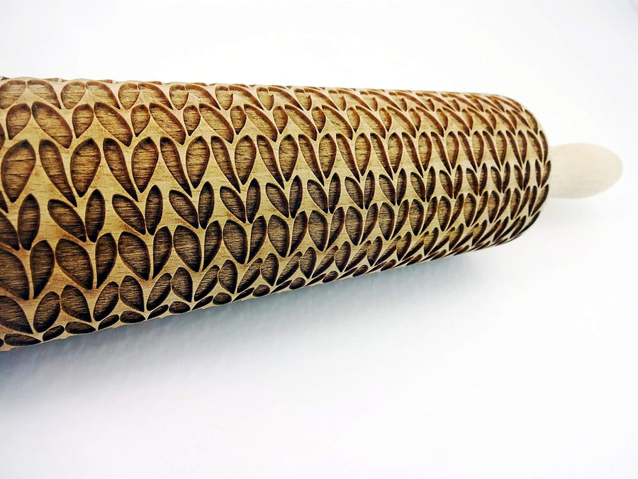 Nudelholz MASCHEN STRICKEN. Teigroller für Teig & Fondant Plätzchen, Kuchen & Gebäck. Gravierte Nude