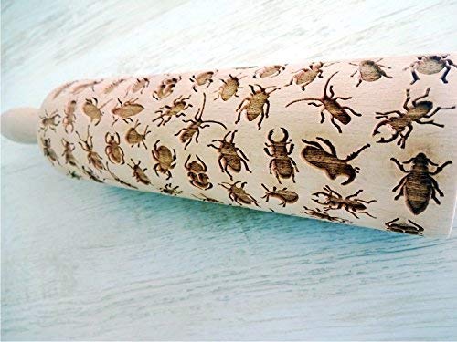 Nudelholz KÄFER. Gravierte Teigrolle für Kekse. Präge Teigrolle. Halloween. Nudelholz mit muster von
