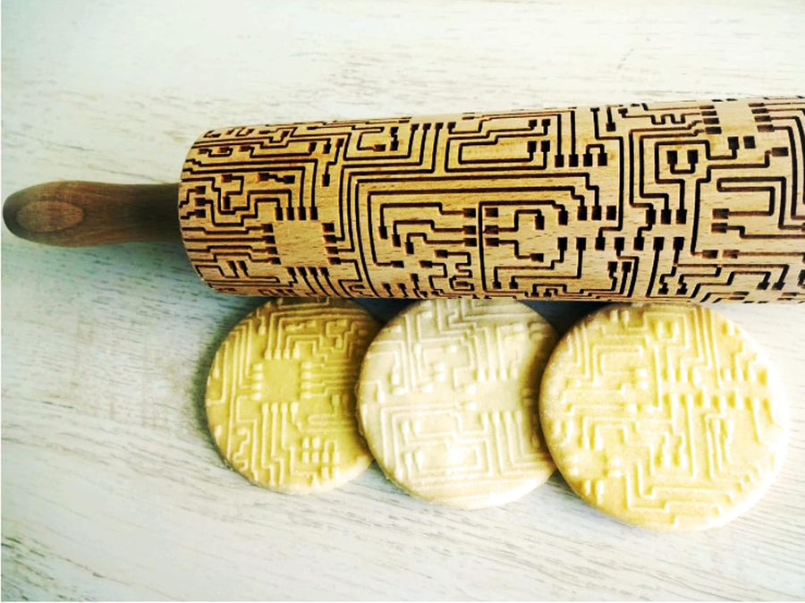 Geprägte Nudelholz mit HI TECH Muster. Teigroller für Hausgemachtes Gebäck. Gravierte Nudelholz mit