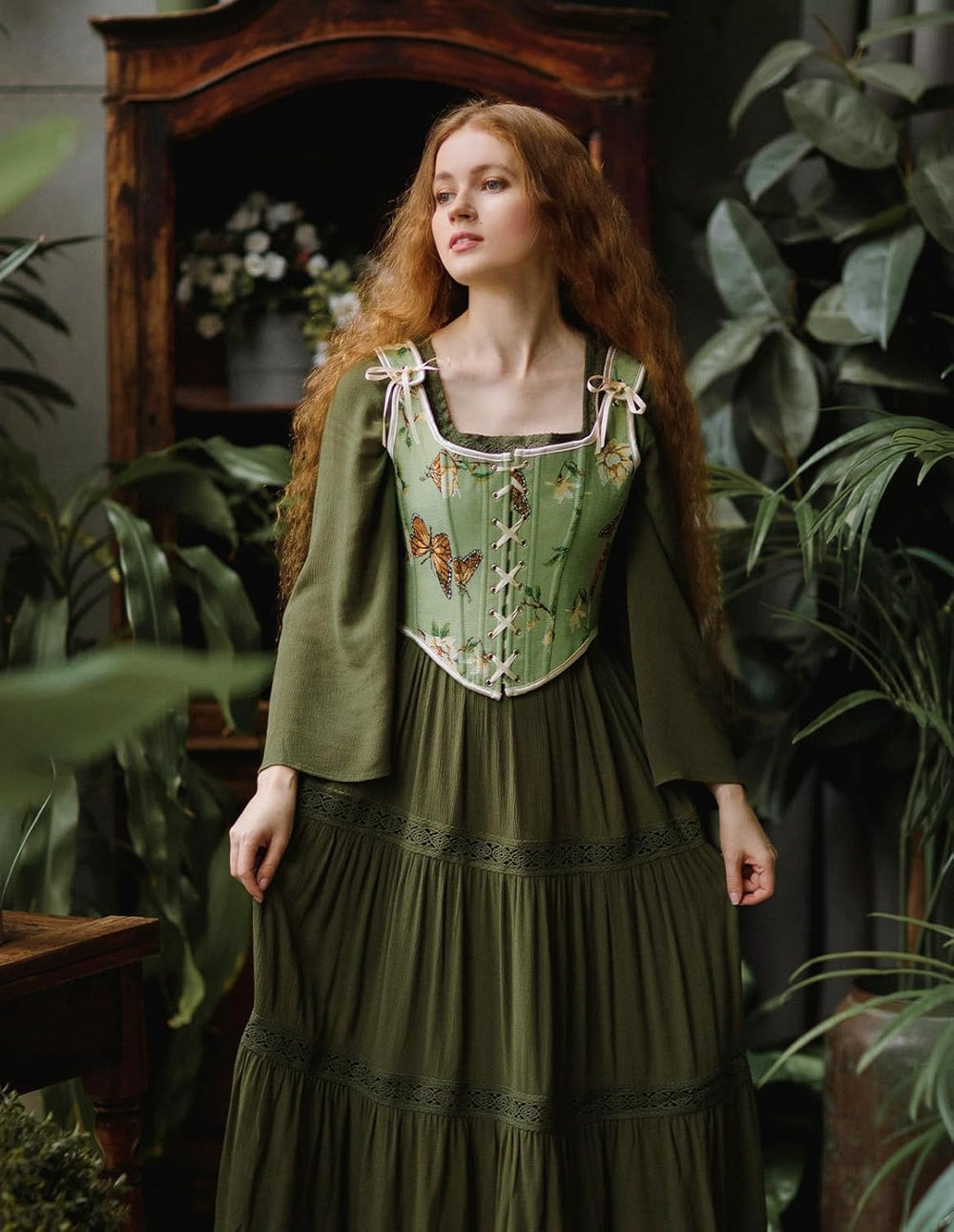 Scarlet Darkness Korsett-Oberteil für Damen, Renaissance, Schnürung, Blumenmuster, Überbrust-Bustier
