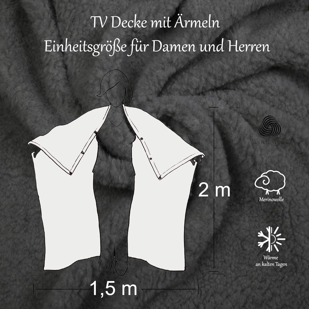 Warme & Dicke Tragbare Decke mit Ärmel aus Schurwolle, Wolldecke Merinowolle, Woolmark-Zertifiziert,