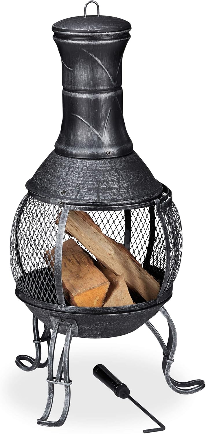 Relaxdays Aztekenofen, Schürhaken, Holzrost, Funkenschutzgitter, Garten, Terrasse, Antik Terrassenof
