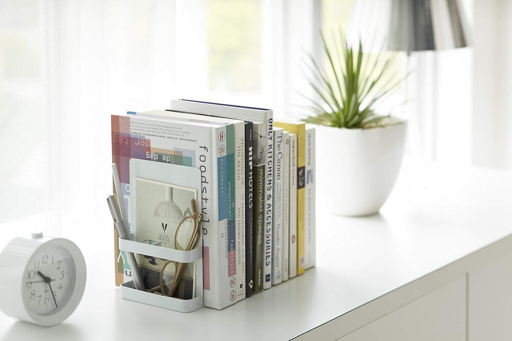 Yamazaki 6872 TOWER Buchstützen, weiss, Stahl, Minimalistisches Design, 12 x 15 x 18 cm (LxBxH), Wei