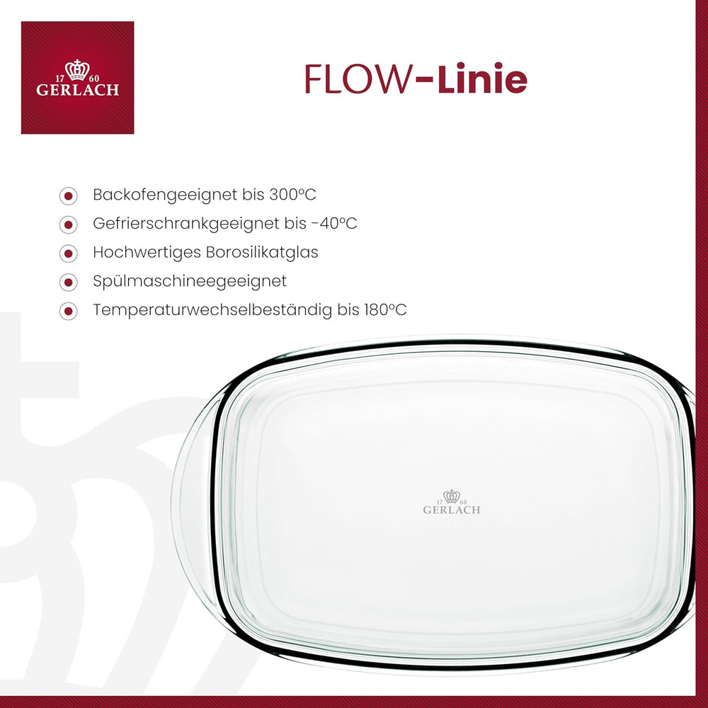 Gerlach 1760 Auflaufform 4,5 l Aus Hitzebeständigem Glas Borosilikatglas Mit Deckel Rechteckig 27 x