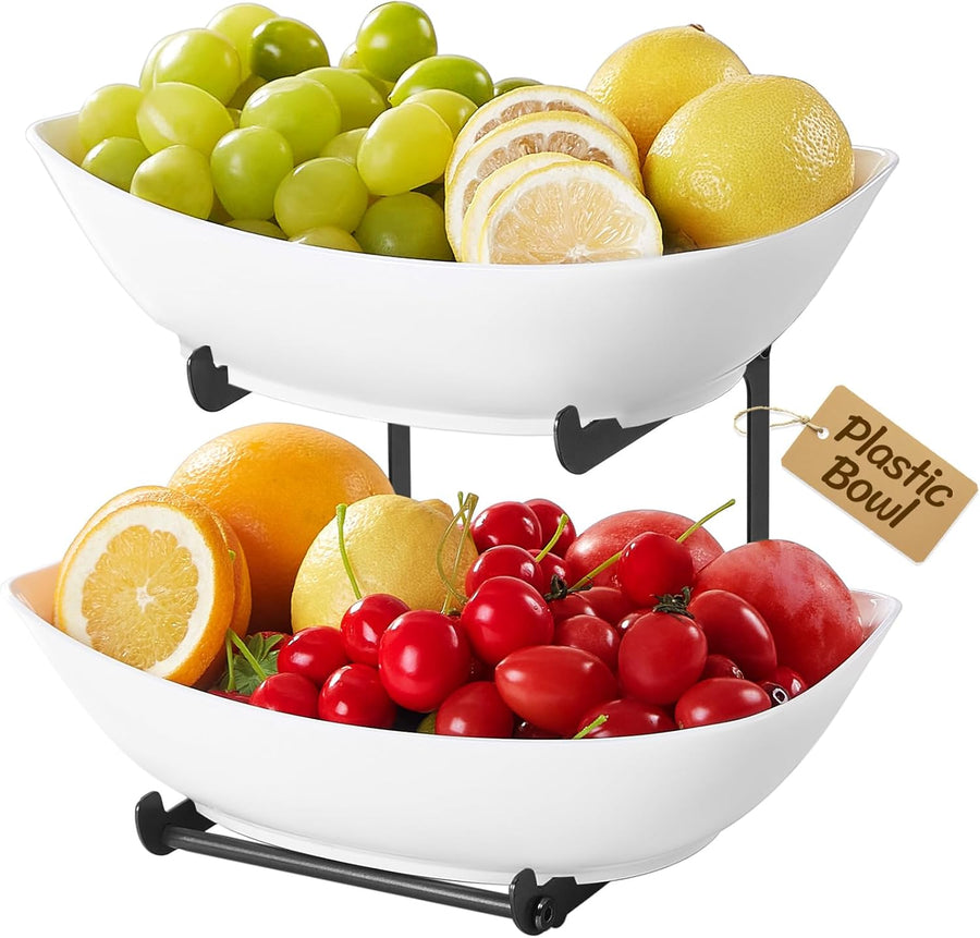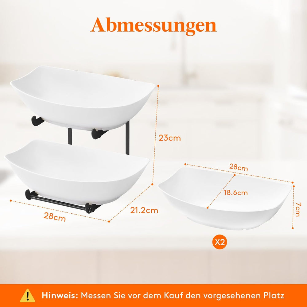 Lifewit Obst Etagere mit 2 Etagen, Obstschalen aus Kunstsoff mit Schwarzem Metallregal, Obstkorb Eta