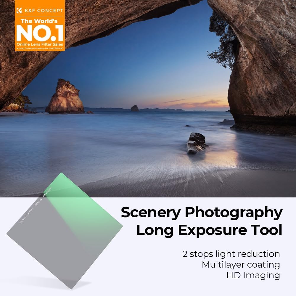 K&F CONCEPT Nano-X Rechteckfilter ND4(2 Stop) 100x100mm Square Filter Graufilter aus Optisches Glas,