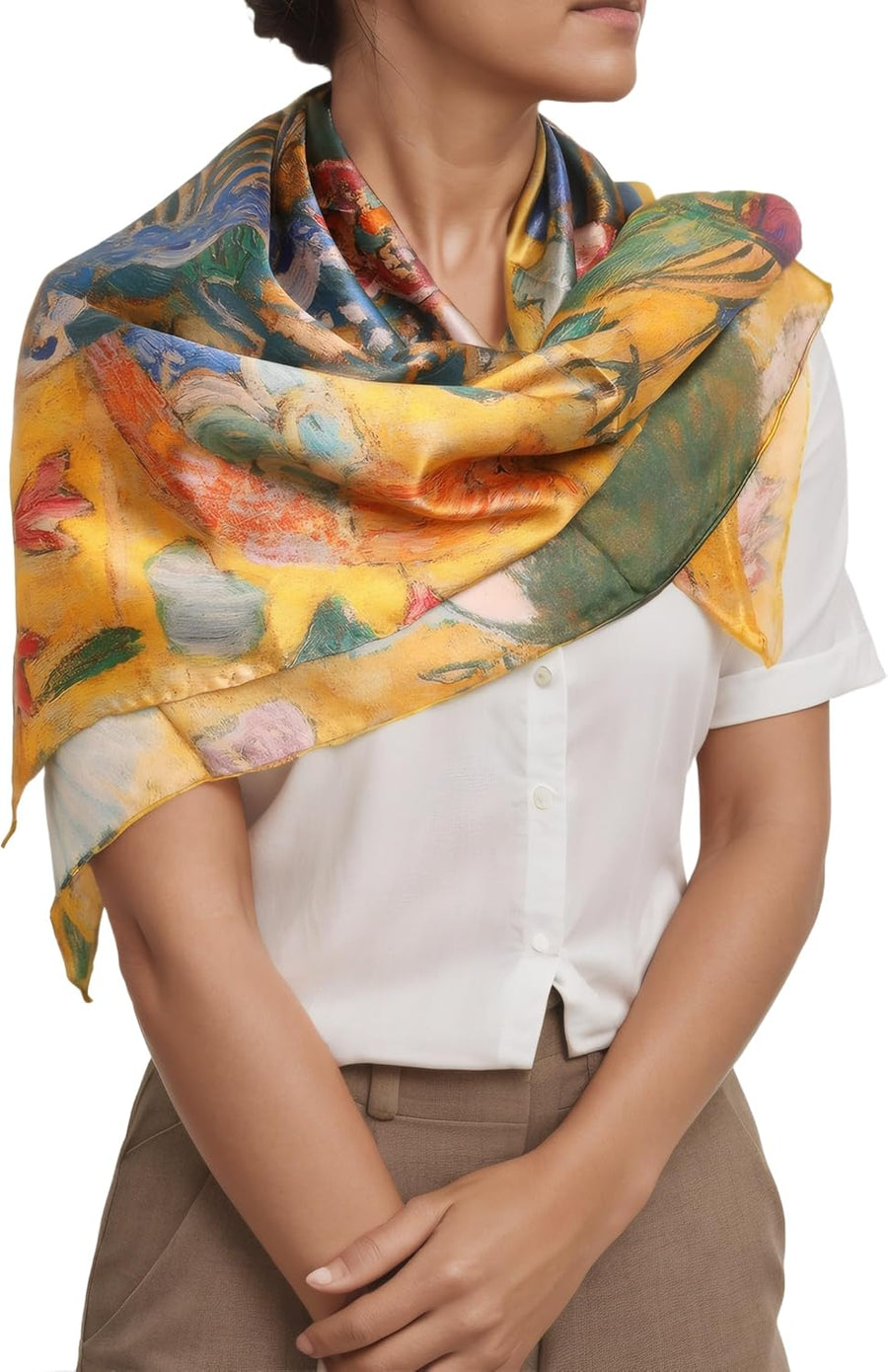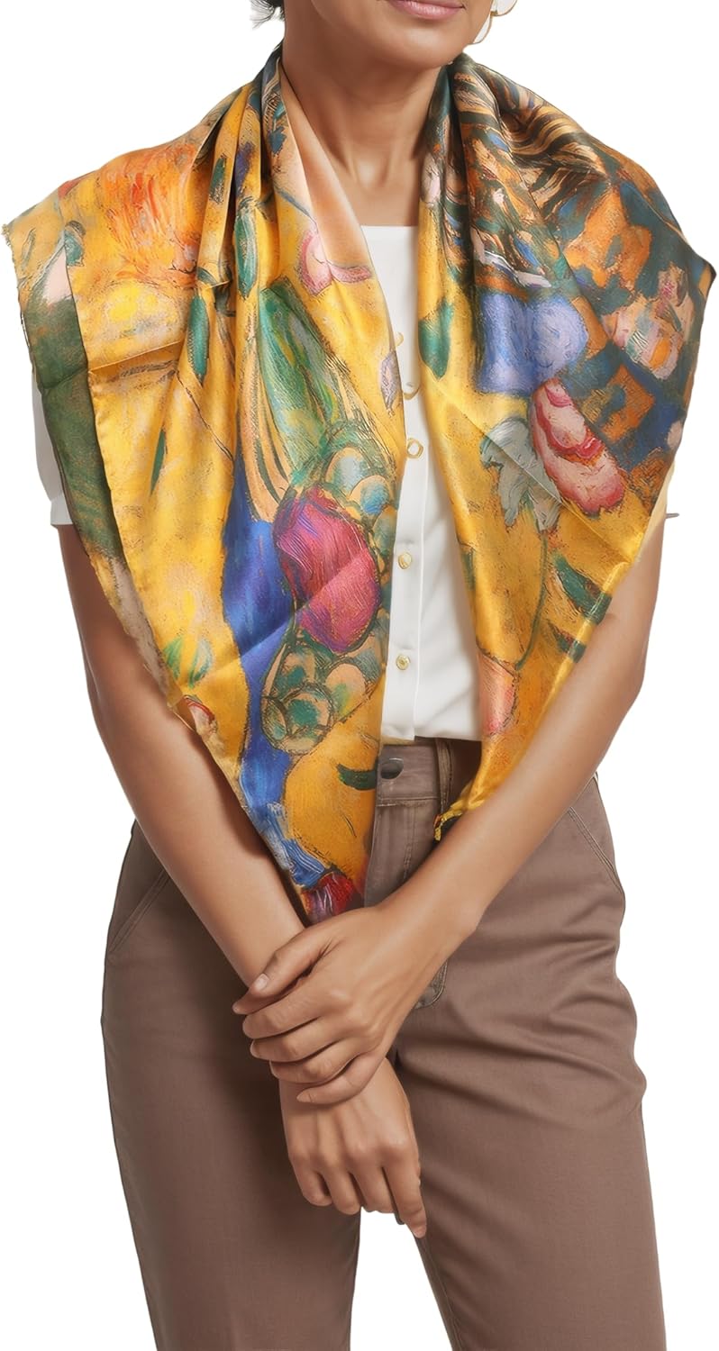 Prettystern Gustav Klimt Seiden-tuch Jugendstil buntes Kunstdrucke, 90 cm X 90 cm Dame mit Fäch