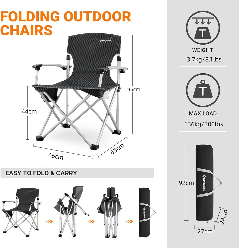 KingCamp XXL Campingstuhl Faltbar bis 205 kg, Übergrosser Camping Stuhl Klappbar Gepolster mit Verst