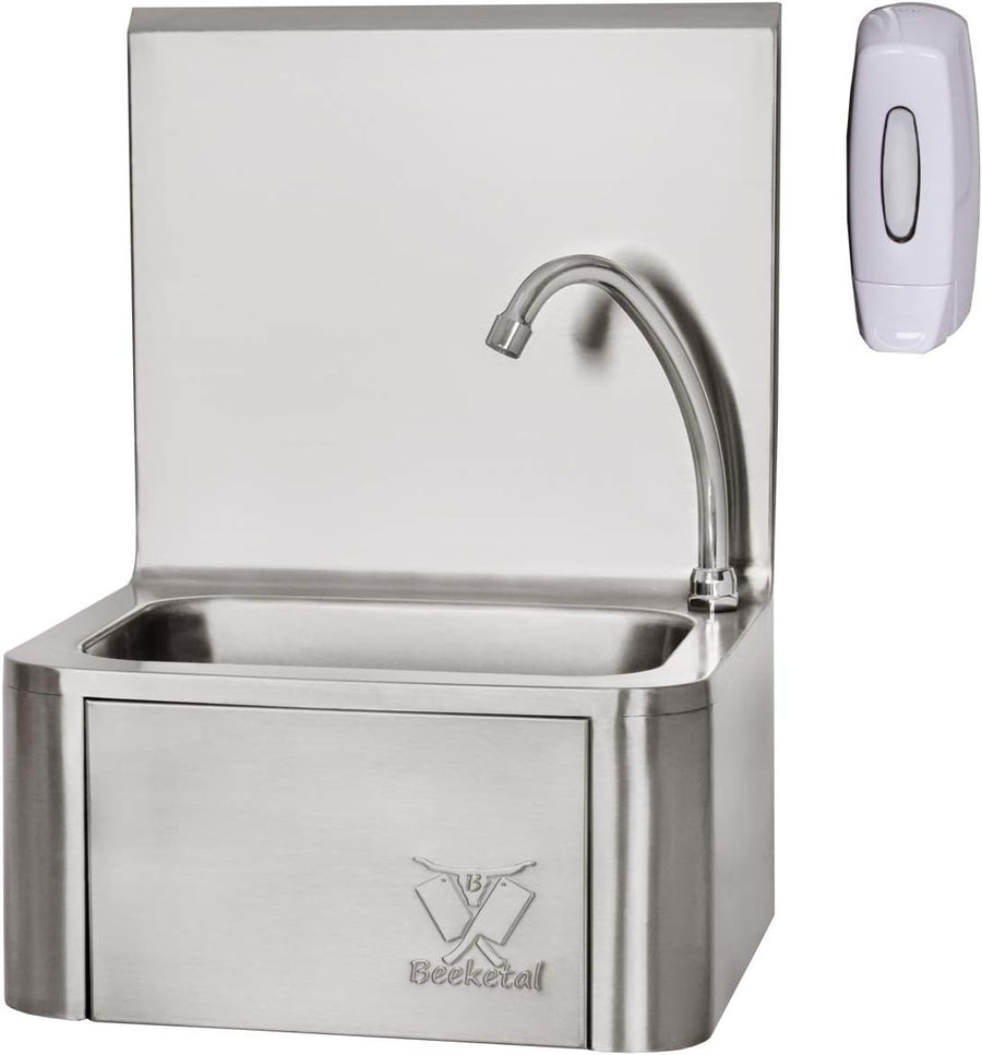Beeketal 'HWB-I' Knie-Kontakt Handwaschbecken aus Edelstahl mit Wasserhahn - Industrie Waschbecken z