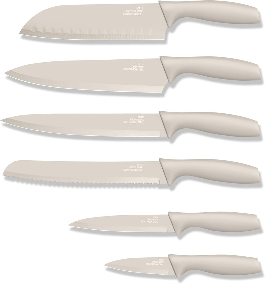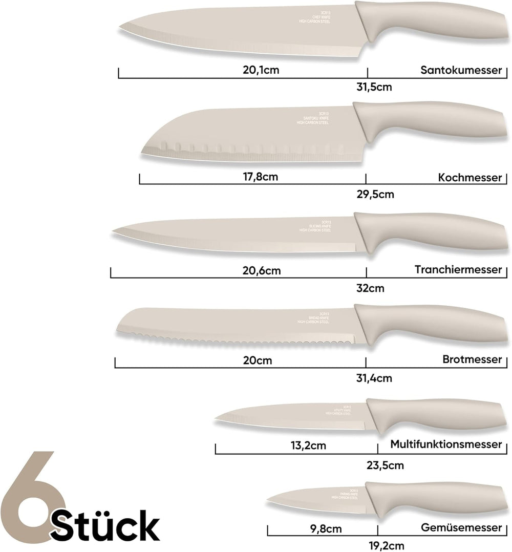 Joyfair Messerset, 6-teiligs Antihaft Karbonstahl Küchenmesser Messer Set mit Schützend Messerscheid